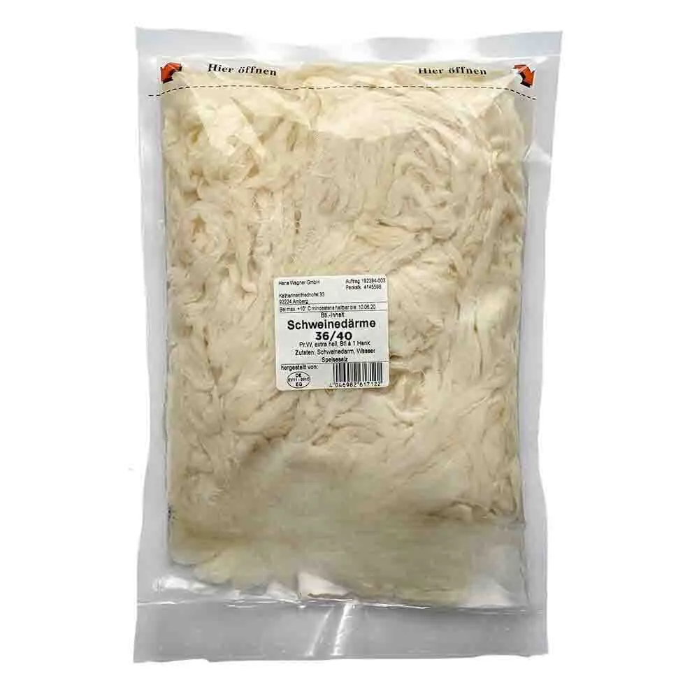Profi Schweinedarm Kal. 36/40 füllfertig, hell, flutschig im Beutel 91m