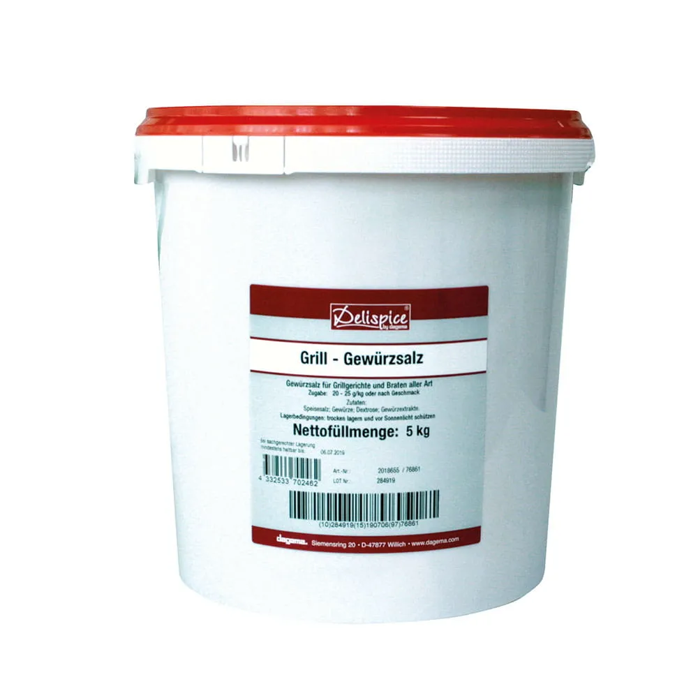Grillgewürzsalz ohne Kräuter 5kg Delicarne-Eimer