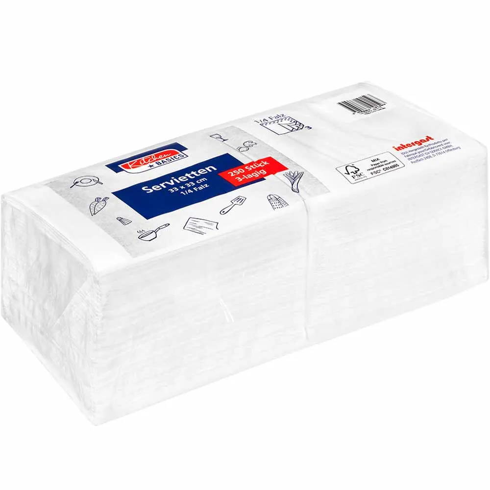 Kitchen Basics Servietten Zelltuch 33x33cm 3lagig 1/4 Falz weiß 250 Stück im Pack