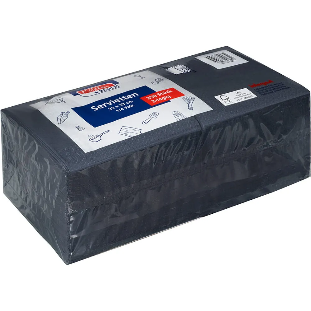 Kitchen Basics Servietten Zelltuch 33x33cm 3lagig 1/4 Falz schwarz 250 Stück im Pack