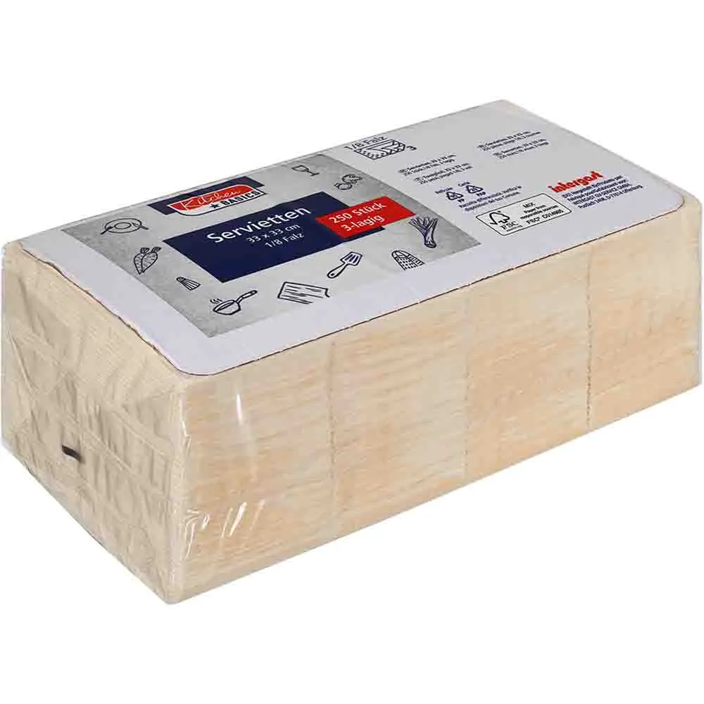 Kitchen Basics Servietten Zelltuch 33x33cm 3lagig 1/8 Falz cream 250 Stück im Pack