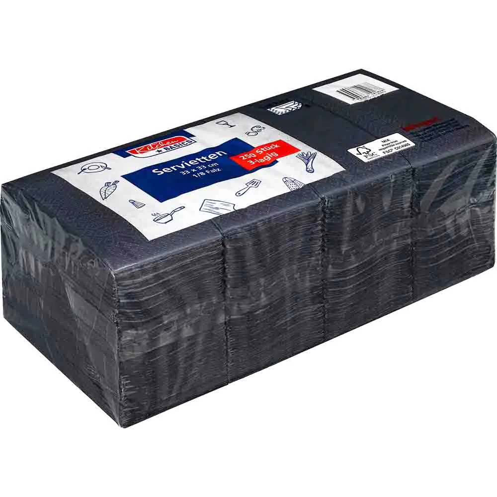 Kitchen Basics Servietten Zelltuch 33x33cm 3lagig 1/8 Falz schwarz 250 Stück im Pack