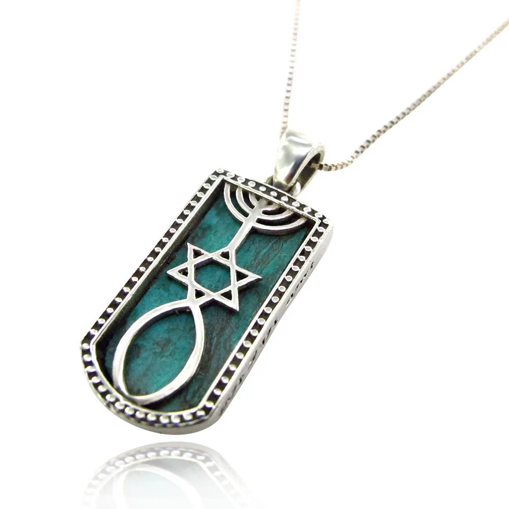 Messianischer Oval-Anhänger mit Eilat-Stein | 925er Sterlingsilber