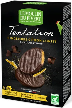 Le Moulin du PivertIngwer-Zitronen-Kekse mit dunkler Schokolade überzogen
