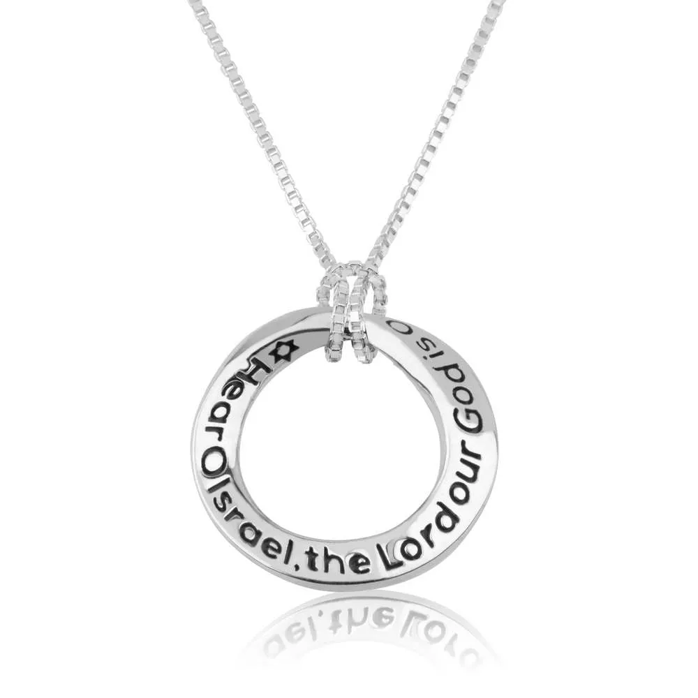 Silber-Anhänger mit dem Gebet „Sh`ma Israël“ in hebräisch und englisch