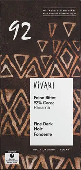VivaniFeine Bitter Schokolade 92 % Cacao Panama mit Kokosblütenzucker