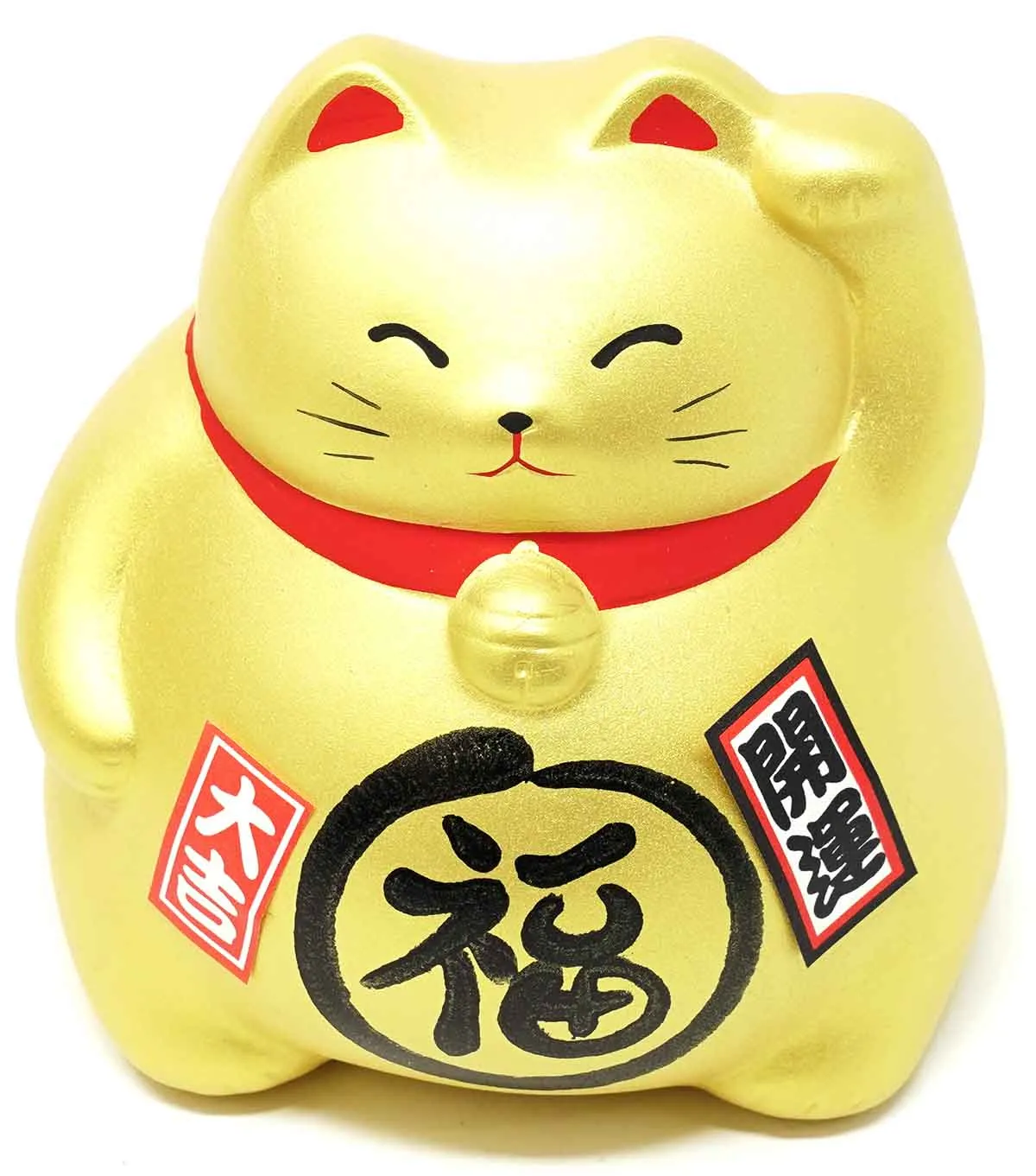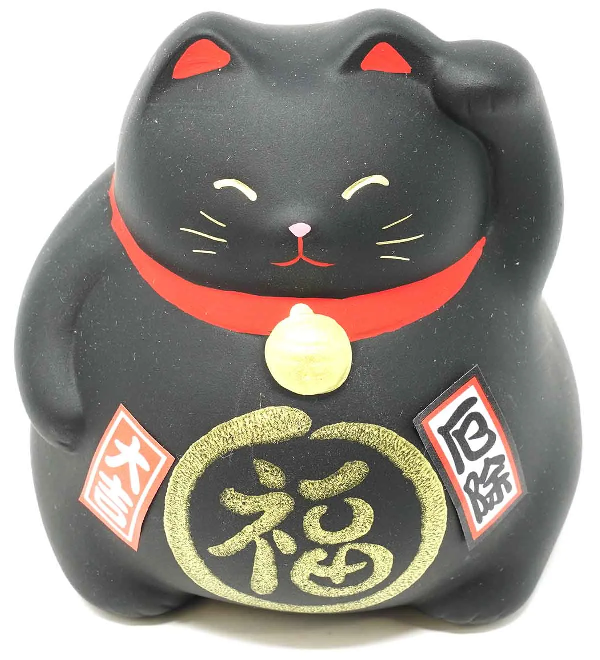 Die Maneki-neko ist im deutschsprachigen Raum auch als Winkekatze bekannt und ist ein japanischer Glücksbringer. Das Zeichen auf dem Bauch dieser Keramikkatze bedeutet „Glück“ und mit der erhobenen Pfote will sie dieses auch in großen Mengen herbeiwinken.